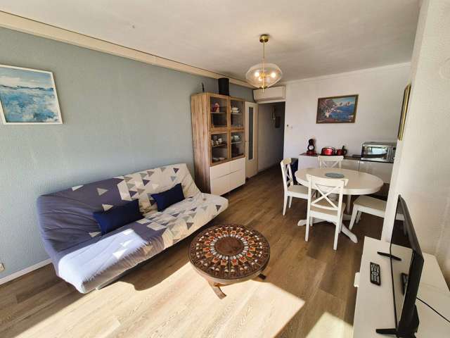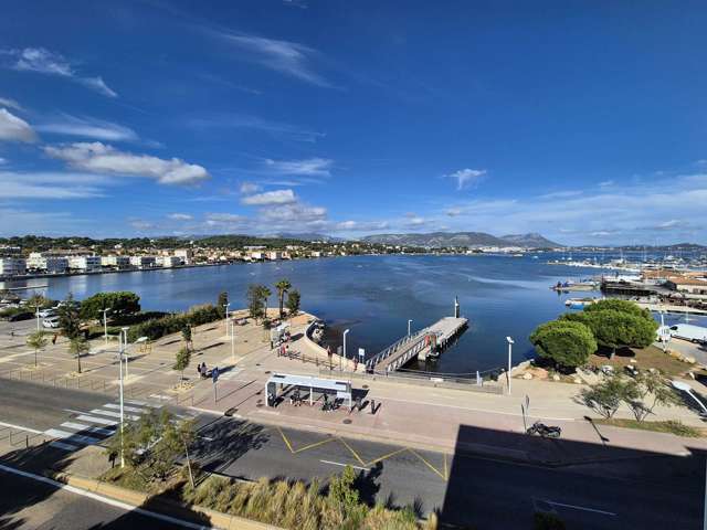 Appartement traversant avec vue mer des deux c?t?s. Il dispose d'une terrasse expos?e sud, vue sur les deux fr?re.Et de l'autre c?t?s vue sur le port. Id?alement situ?, tout ce fait ? pied, plage, commerces, restaurants et embarcad?re en face pour aller ? Toulon.