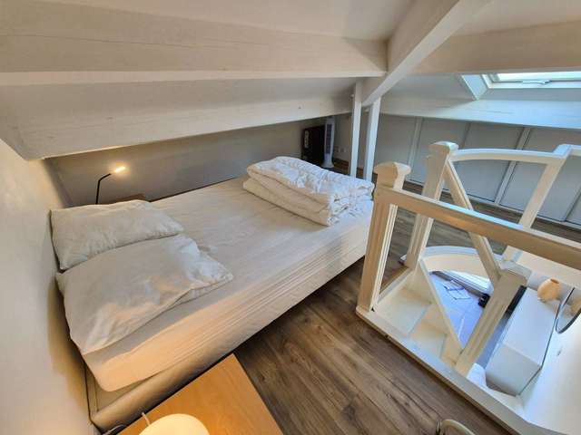 Magnifique duplex contemporain, tout confort, comprenant une pièce de vie de 26 m² et une mezzanine sous rampant de 10 m² aménagée en coin nuit.