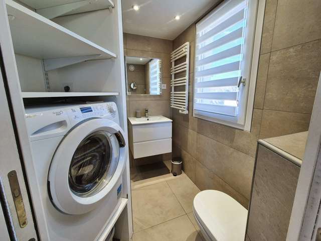 Équipements inclus : lave-linge, lave-vaisselle, four, micro-ondes, réfrigérateur, congélateur, cafetière à dosettes Nespresso, bouilloire, climatisation, téléviseur, store électrique, aspirateur, étendoir...