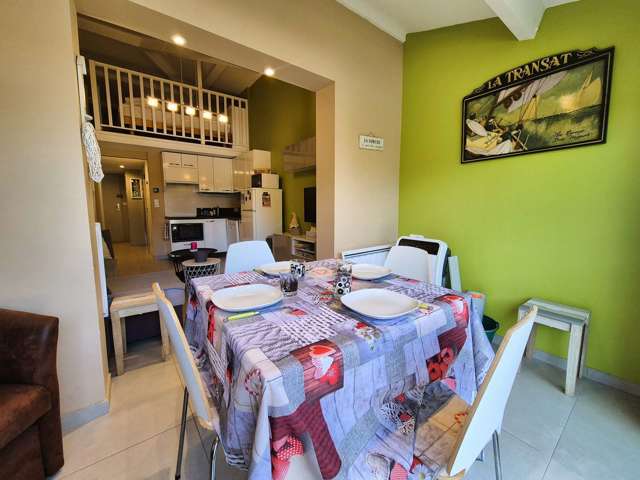 Envie de déconnecter et de profiter du soleil dans un cadre verdoyant ? Posez vos valises dans ce joli duplex lumineux de 30 m² situé dans la résidence Cap Soleil, un véritable petit cocon parfaitement optimisé pour des vacances en famille ou entre amis.