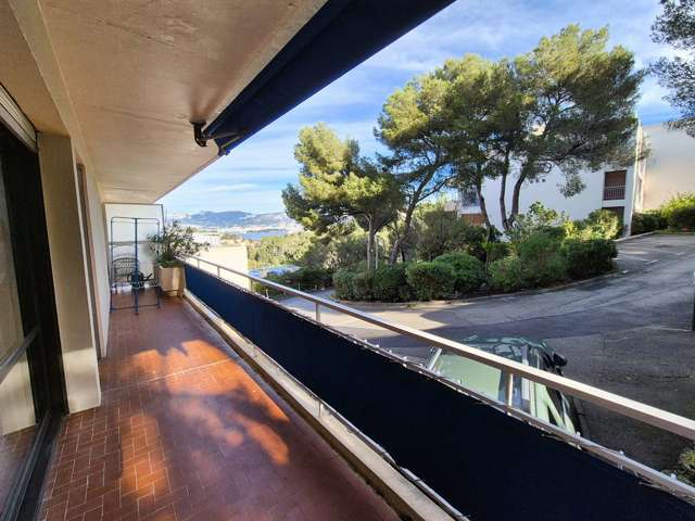 Le grand séjour lumineux, baigné de lumière grâce à ses larges baies vitrées, souvre sur un spacieux balcon avec une superbe vue mer, idéal pour les moments de détente.