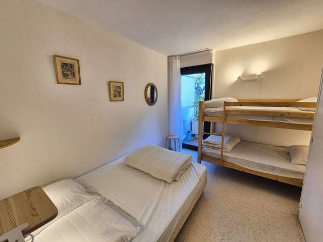 Chambre 2 : lit double + lit superposé, également ouverte sur le balcon