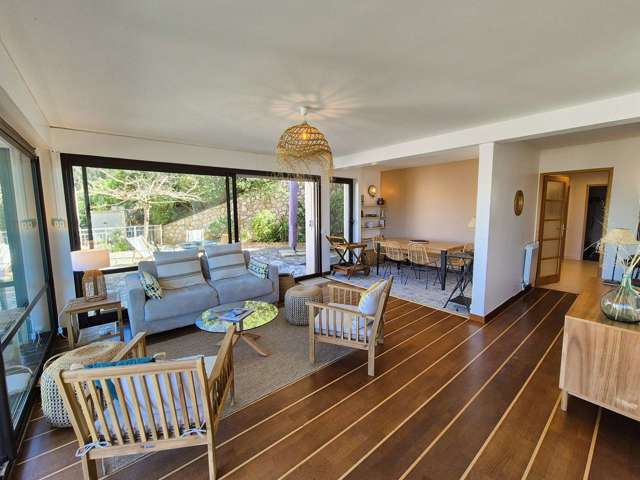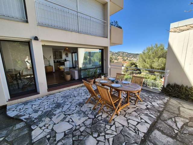 Appartement lumineux de 77 m² en rez-de-jardin, situé sur les hauteurs du village de Saint-Mandrier-sur-Mer, dans une résidence calme avec piscine et court de tennis. La terrasse de 60 m² offre un bel espace extérieur pour profiter du plein air. Une place de parking privative est incluse.