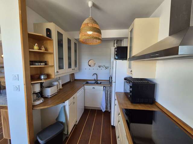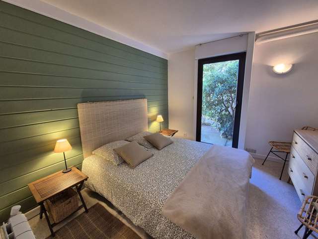 Cet appartement lumineux en rez-de-jardin, avec terrasse de 60 m², piscine et court de tennis dans la résidence, offre un cadre idéal pour des vacances en famille ou entre amis, avec un accès facile à lembarcadère pour la navette maritime vers Toulon ou les îles dHyères.