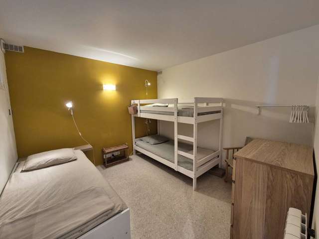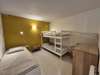 Le logement comprend une chambre avec lit double ouvrant sur la terrasse, une seconde chambre avec 3 lits simples, ainsi quun séjour spacieux avec canapé donnant accès à la terrasse. La cuisine est ouverte sur la pièce de vie. Ventilateurs à disposition.