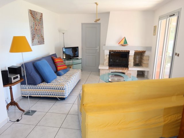 Composée au rez-de-chaussée d'une grande pièce à usage de séjour-salle à manger, cuisine entièrement équipée, une chambre (lit double en 140) avec terrasse privative et vue mer, une salle d'eau avec wc.