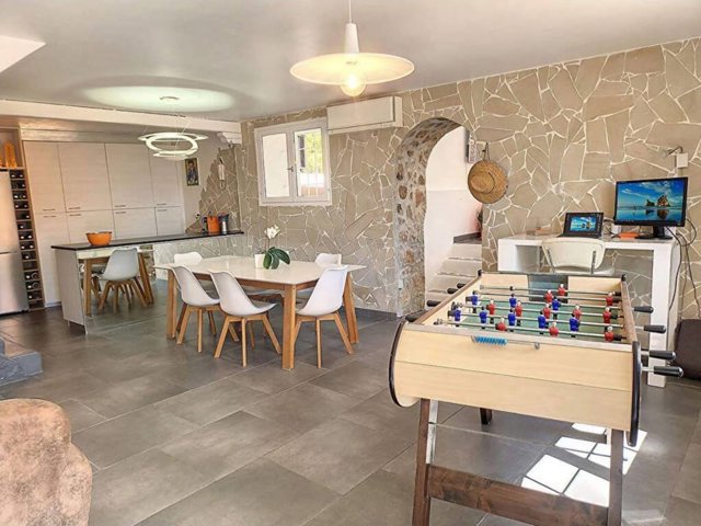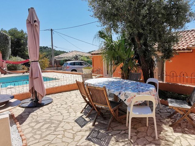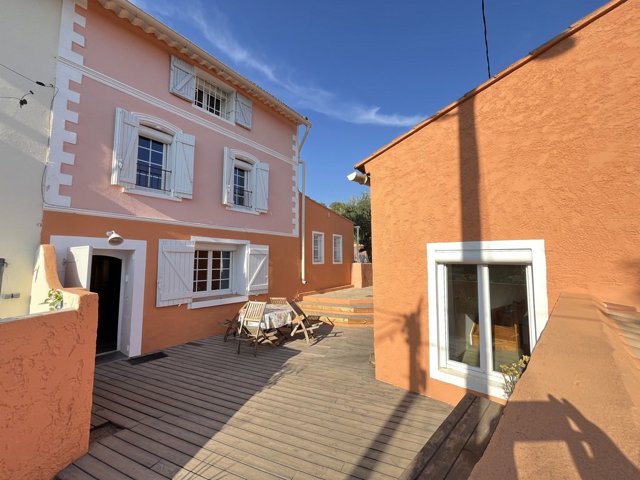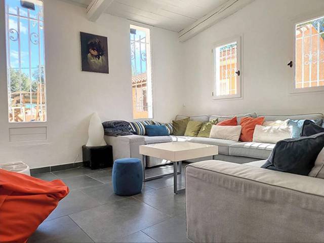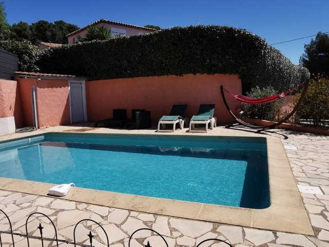 Dans un quartier très calme de la commune de Six-Fours-les-Plages, belle villa (mitoyenne côté Ouest) entièrement climatisée et de style atypique (beaucoup de cachet) avec terrasses, piscine et grand parking ; le tout privatif bien évidemment !