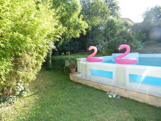 Maison de 160 m² avec 3 chambres climatisées et terrain de 1000 m² avec piscine, salon de jardin et boulodrome.
