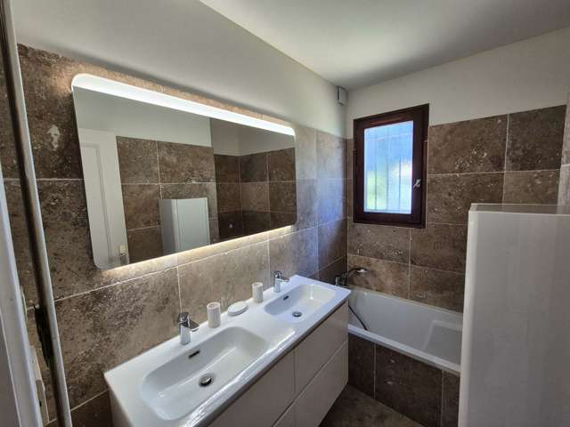 - 1 chambre climatisée avec lit double et une salle de bain : baignoire et douche séparée. 1 wc indépendant