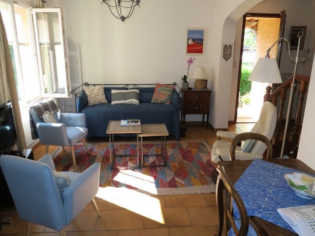 Charmante villa, pour 4/6 personnes, 2 chambres, séjour, cuisine équipée, loggia, terrasse, parking et garage, située entre le centre de Sanary et la plage de Portissol, et en retrait de l'avenue de Portissol. Idéal pour profiter du centre ville, des boutiques, du port, des marchés et des animations estivales.