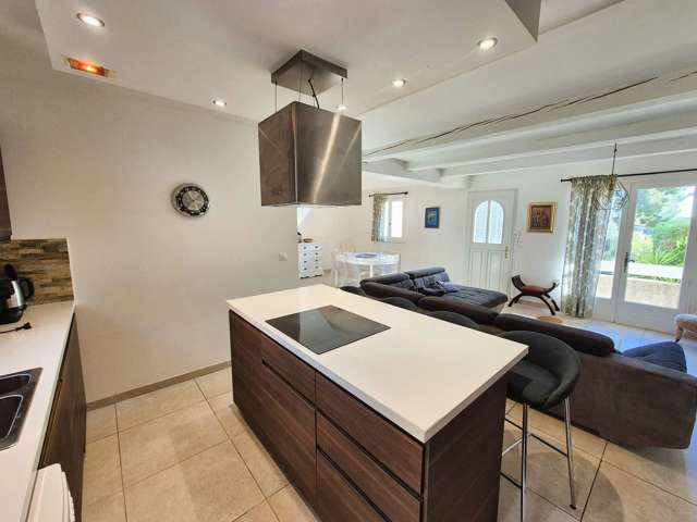 Cuisine ouverte sur le s?jour et le salon, espaces lumineux.