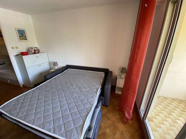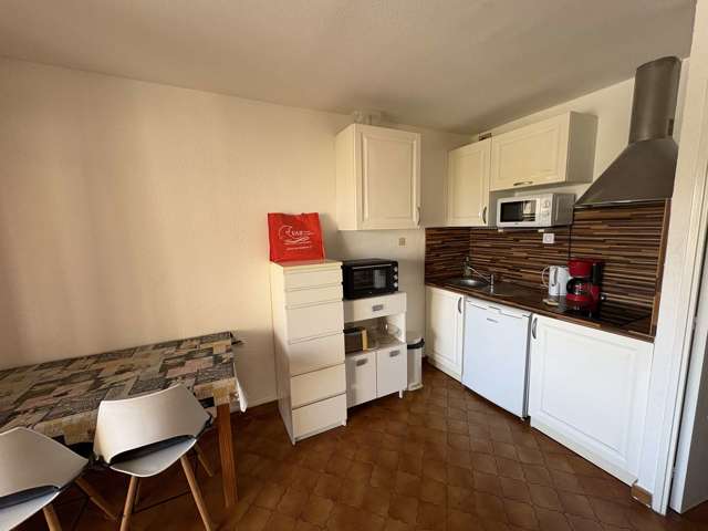Beau studio cabine 4 couchages, 24 m?, grand balcon am?nag? avec salon de jardin, parking dans la r?sidence, ascenseur, tout confort, id?alement situ?, au calme, plage et commerces de proximit? ? pieds.