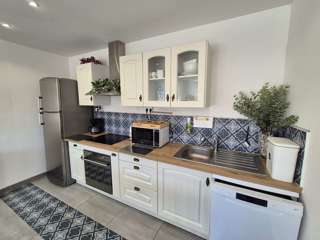 ?quipement : lave-linge, lave-vaisselle, plaques de cuisson (4 feux), hotte aspirante, four, micro-ondes, r?frig?rateur avec compartiment cong?lation, cafeti?re ? filtre, bouilloire, grille pain.