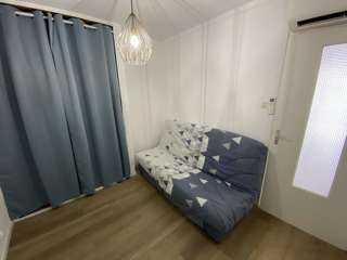 -Plaque de cuisson vitro (2 feux), hotte aspirante, four, micro-onde, r?frig?rateur et cong?lateur, cafeti?re (Dolce Gusto capsule), bouilloire, grille-pain