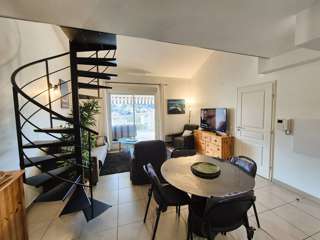 Grande terrasse aménagée de 20 m² avec point d'eau (tuyau d'arrosage), face au port, appartement de 52 m², 5 couchages.