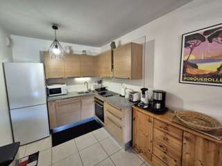 -4 feux vitrocéramique, hotte aspirante, lave-vaisselle, four, réfrigérateur et congélateur, micro-ondes,