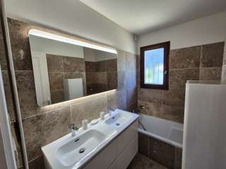 - Pour ces chambres, une salle de bain avec baignoire douche et double lavabo
