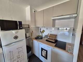 Le coin cuisine, ouvert sur le séjour, est équipé pour vous permettre de cuisiner comme à la maison : idéal pour préparer de bons repas après une journée à la plage.
